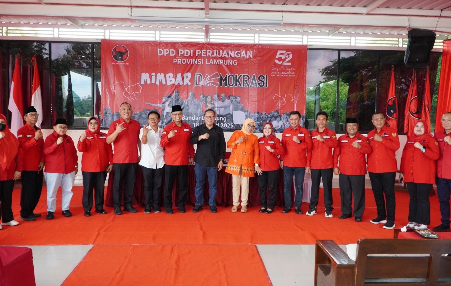 <p><br>Bandar Lampung &#8211; DPD PDI Perjuangan Provinsi Lampung menggelar kegiatan Mimbar Demokrasi yang mengusung tema &#8220;Memperkuat Demokrasi untuk Indonesia yang Berkeadilan dan Berdaulat&#8221; di Lantai 3 Kantor DPD Partai setempat, Sabtu (18/1/2025). </p>