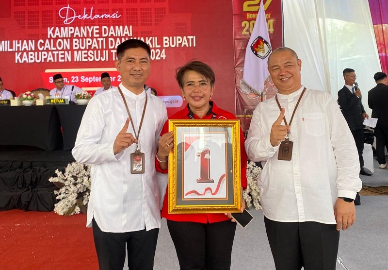 <p><br>Komisi Pemilihan Umum (KPU) Kabupaten Mesuji menggelar pengundian dan penetapan nomor urut pasangan calon (paslon) bupati dan wakil bupati, Senin (23/9/2024).</p>