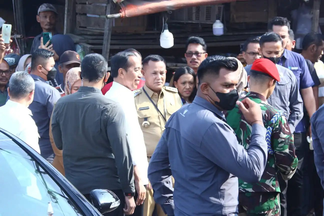 Lampung Selatan – Presiden Republik Indonesia (RI) Joko Widodo (Jokowi) mengunjungi Pasar Natar, Kabupaten Lampung Selatan, Jumat pagi (5/5/2023).