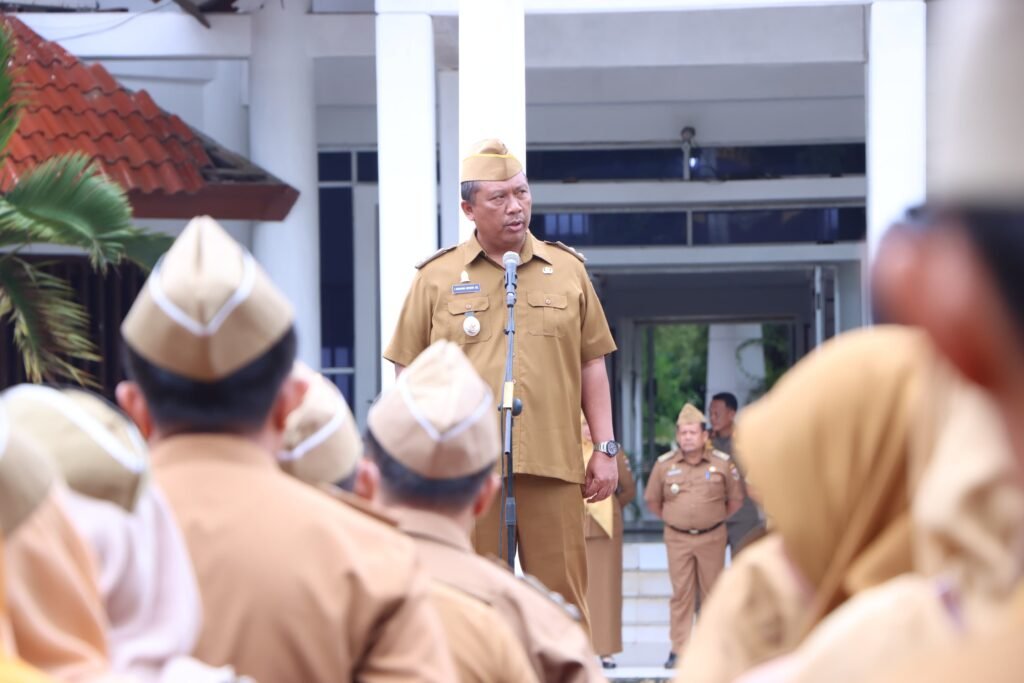 Lampung Tengah – Wakil Bupati Lampung Tengah, I Komang Koheri, menjadi pembina apel pagi di lingkungan Sekretariat Daerah. Apel tersebut diikuti oleh para asisten, staf ahli, kepala perangkat daerah, pejabat eselon III dan IV, staf, serta PTHL.