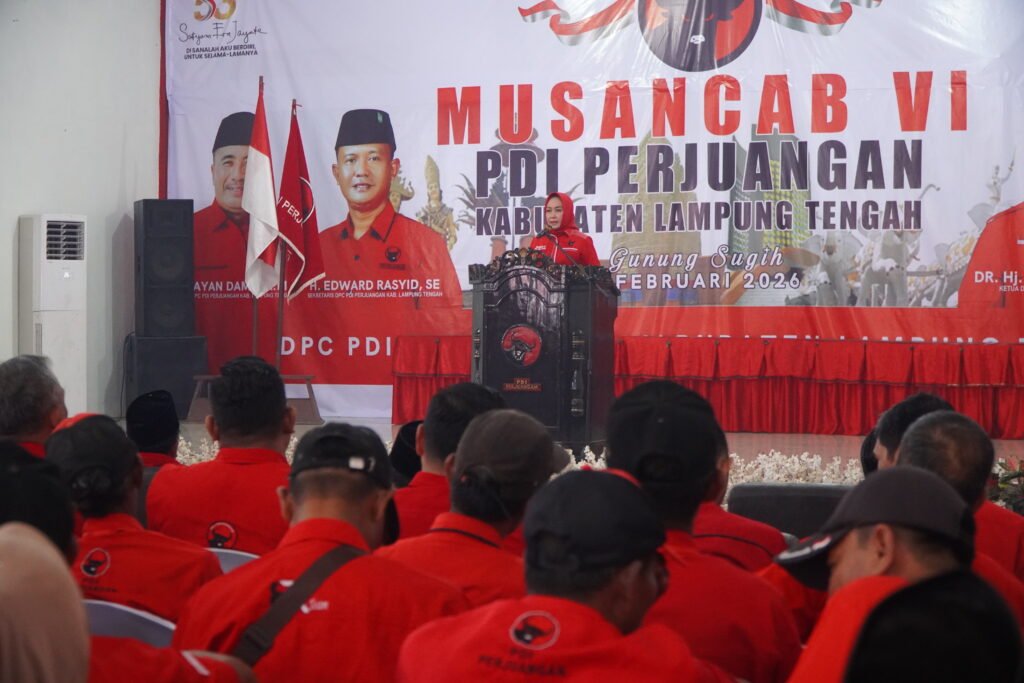 Lampung Tengah – Ketua DPD PDI Perjuangan Provinsi Lampung, Winarti, secara resmi membuka Musyawarah Anak Cabang (Musancab) PDI Perjuangan Kabupaten Lampung Tengah. Kegiatan ini menjadi momentum penting untuk memperkuat konsolidasi organisasi partai hingga ke tingkat paling bawah, mulai dari PAC, ranting, hingga anak ranting. Kegiatan dilaksanakan di Kantor DPC PDI Perjuangan Lampung Tengah, Senin (9/2/2026).