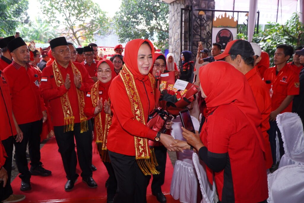 Suasana semakin khidmat saat Ketua DPC PDI Perjuangan Kota Bandar Lampung, Dedi Yuginta, menyematkan selendang tapis Lampung kepada Ketua DPD sebagai bentuk penghormatan sekaligus simbol sinergi antara struktur partai di tingkat provinsi dan kota.